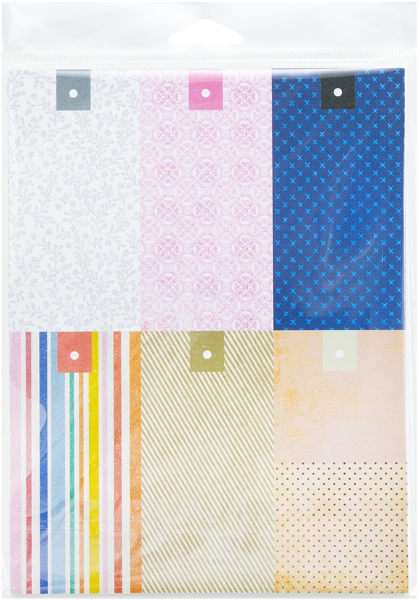 Pakke med 24 ark dobbeltsidet mønsterpapir i str. 6x8" (ca. 15x20 cm) samt et ekstra ark på indersiden af omslaget.
