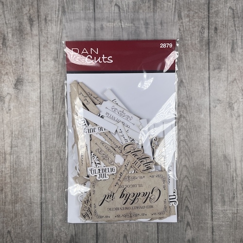 Pakke med små udskårne motiver, som kan bruges som dekoration på kort.