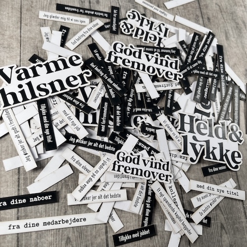 Pakke med små udskårne motiver, som kan bruges som dekoration på kort.