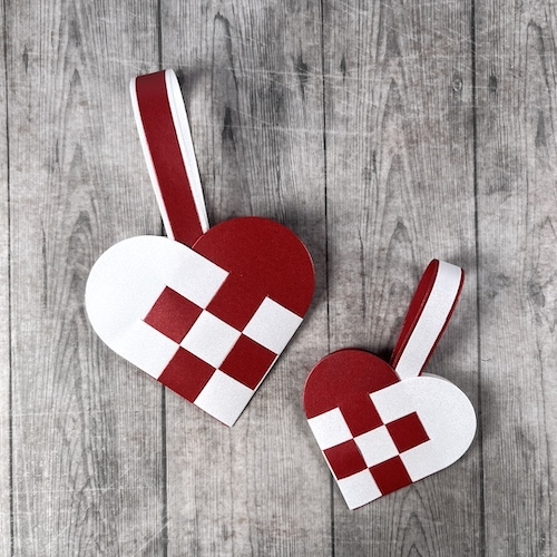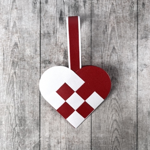 Du skal bruge 2 hjerte dele for at lave et hjerte, som flettes sammen for at lave en lille kurv som vi kender de klassiske julehjerter.