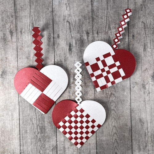 Du skal bruge 2 hjerte dele for at lave et hjerte, som flettes sammen for at lave en lille kurv som vi kender de klassiske julehjerter.