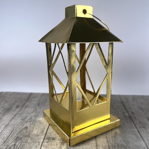 Laver den fineste 3D lanterne som fungerer super godt som pynt i vinduer og på borde, og er designet til at kune indeholde et standard LED fyrfadslys. Lanternen kan også bruges som gaveæske hvis du sætter et stykke papir på bagsiden af vinduerne. Du skal også bruge en snor, creoler ørering, metaltråd eller lignende til at lave ophænget til toppen af lanternen. Du kan finde mere information om hvordan lanternen samles i denne YouTube Video.