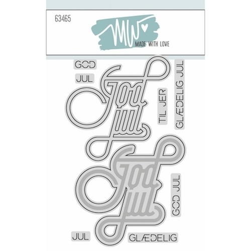 God Jul Script fra Made With Love indeholder 1 stor tekst, 1 skygge med tekst og 7 løse tekster: "god", "jul", "glædelig", "jul", "glædelig jul", "god jul" og "til jer".