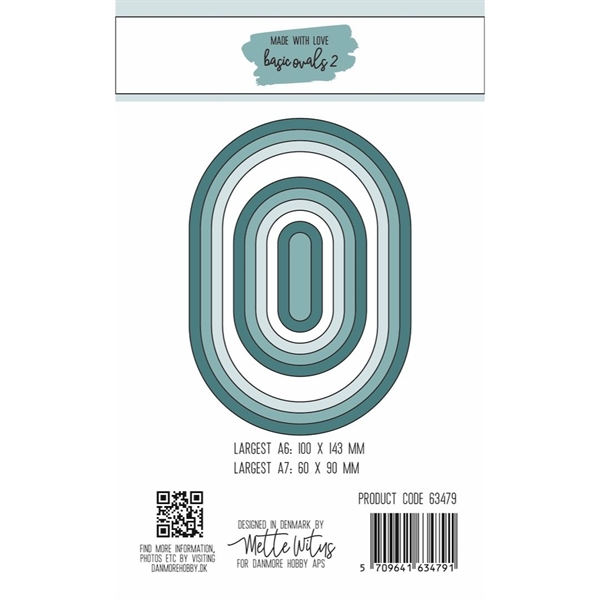 Basic Ovals 2 fra Made With Love indeholder 10 ovale dies. 4 i A6 format og 6 i A7 format.