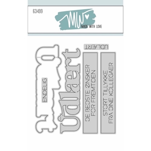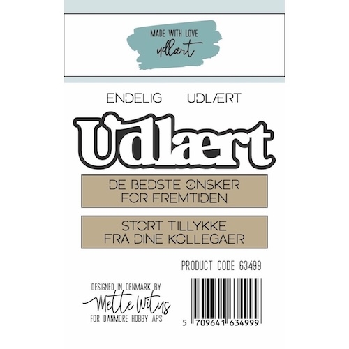 Udlært fra Made With Love indeholder 6 tekst dies. Udlært i en stor størrelse med skygge, 2 løse små tekster (endelig og udlært) og 2 label tekster.