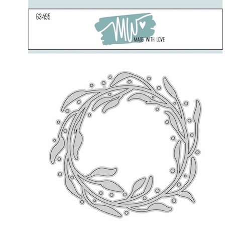 Wreath with splats fra Made With Love indeholder 1 dies med en bladkrans omgivet af små prikker.
