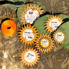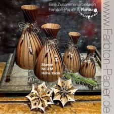 Med dies fra Farbton kan du lave dine egne smukke foldede ophæng til f.eks. dit juletræ eller til at hænge på en troldegren. Det anbefales at bruge kraftigt papir til at skære og folde i, f.eks. det smukke perlemorsskinndende Majestic papir eller den mere afdæmpede elegante Paper Favorites Metallic, som du finder i samme varegruppe.