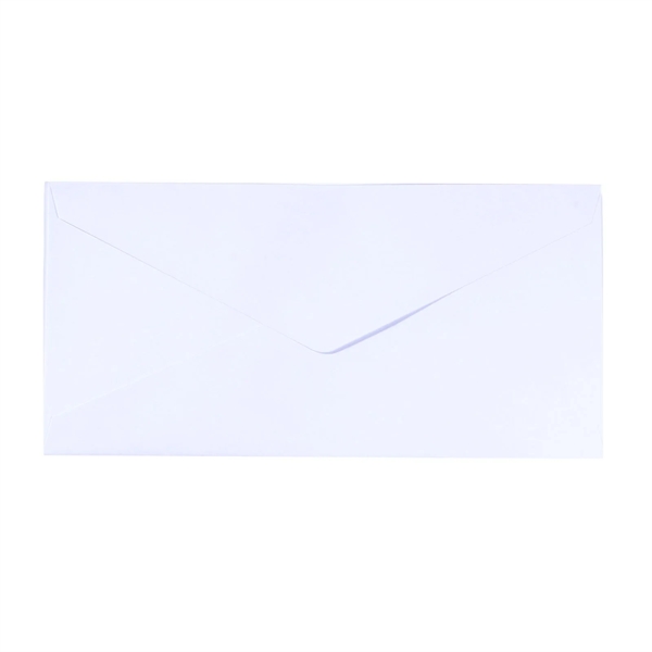 Kuvert i hvidt papir. Gummieret (ikke selvklæbende).