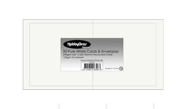 Hobbygros Kort & Kuverter - Kvadratisk 6x6" (15,2x15,2cm) Pure White (knækket hvid) / 50 sæt