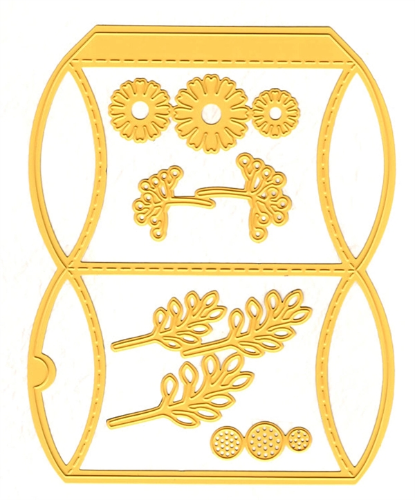 This set includes 5 cutting dies to make a pillow box box of 9 x 6,5 x 1,2 cm. This pillow box features 4 cutting dies to decorate your box with flowers and leaves. Nellie's Choice dies are compatible with die-cutting machines from most brands. They are lightweight, sturdy, and made from high-quality steel, ensuring you can enjoy them for years. Nellie's Choice wrapping dies are available for various giftboxes with fun Easter patterns, flower decorations and unique shapes.