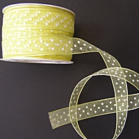 Halv-gennemsigtigt organza-bånd med hvide prikker.