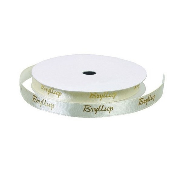 Satin Bånd m. Tryk - Bryllup / Creme m. Guld