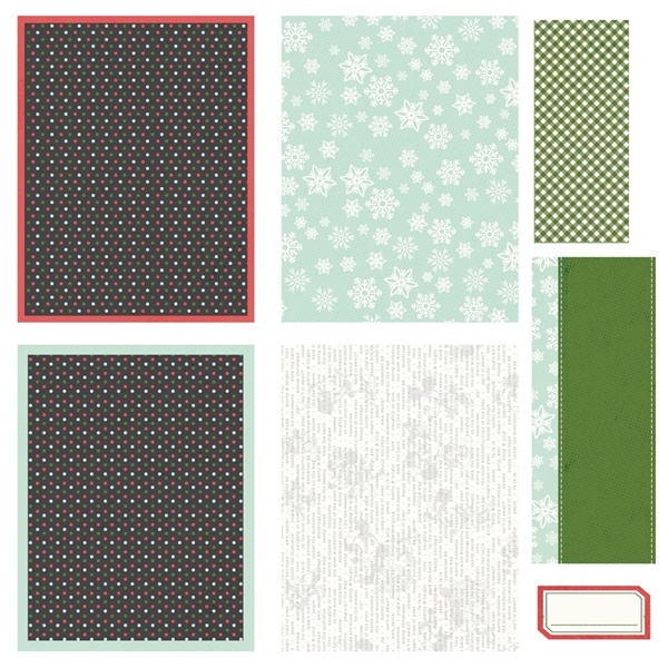 Du får både kortbaser, mønsterpapir og pynt til alle kort.