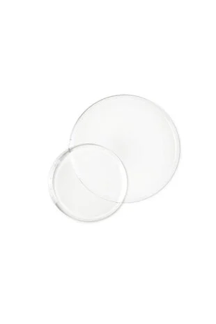 Pladerne måler hhv. 3.5" og 5" i diameter (hhv. ca. 8,9 og 12,7 cm).
