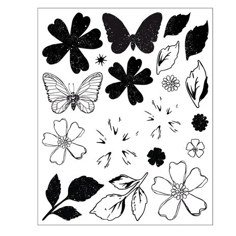 Flot stempelsæt (klare siliconestempler) med matchende framelits dies.