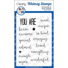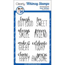Whimsy stamps og dies er designet i en rigtig sød tegneserie-stil med runde former, skøre udtryk og sågar talebobler. De er perfekte til kort med søde og sjove budskaber.