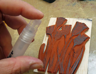 Nu kan du stemple motivet med vand - i løbet af få sekunder begynder vandet at skubbe til sværten, så motivet træder mere og mere frem.