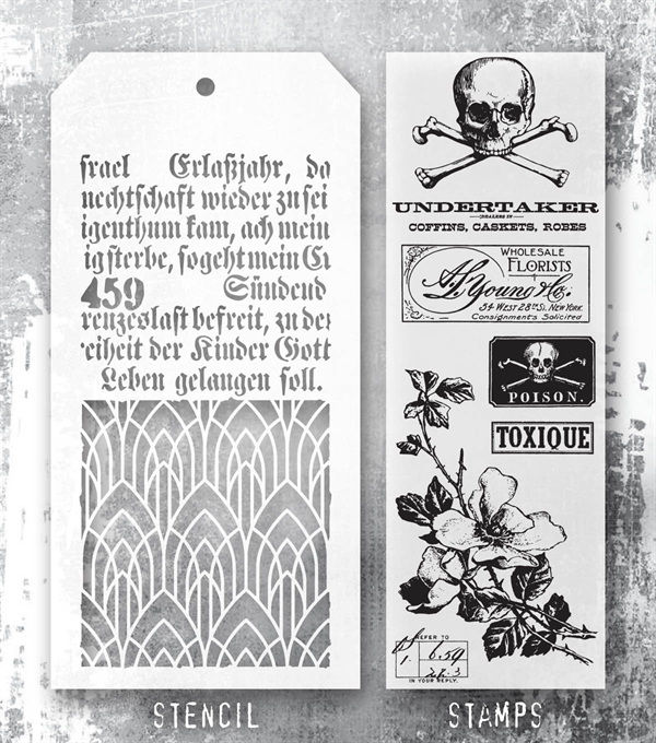 Tim Holtz Mixed Media Set (Clear Stamp & Stencil) - #72 (rest in peace)