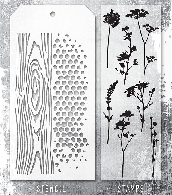 Tim Holtz Mixed Media Set (Clear Stamp & Stencil) - #59 (wildflower stems)