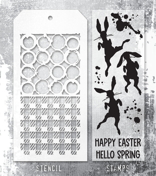 Tim Holtz Mixed Media Set (Clear Stamp & Stencil) - #83 (bunny hop)