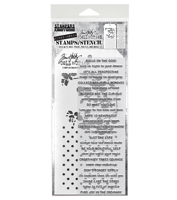 Tim Holtz Mixed Media Set (Clear Stamp & Stencil) - #13 (sentiments)