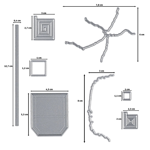 These cutting dies from Vaessen Creative allow you to cut or emboss a jeans pocket, phrases and ripped, 3D and wobbly effects out of various materials such as paper, cardstock, metallic foil, felt, fabric, thin leather and more using a die-cutting and embossing machine. These dies from the Guinea Pigs Collection are designed by illustrator Carla Creates, known for her cheerful drawings, cards and portraits made with pencil, ink and paint. The great thing about cutting dies is that they provide you with beautiful designs without the need to draw and cut them yourself. Use the dies for papercraft projects like card making, journaling, scrapbooking or mixed media artwork.