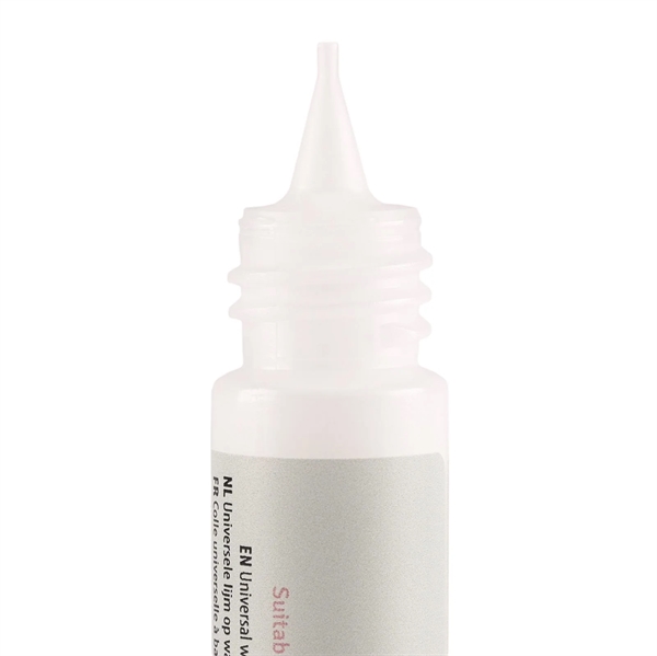 The universal formula adheres to various materials such as paper, cardboard, wood, and fabric. Apply a thin layer to both surfaces, allow it to dry slightly, then press the parts firmly together. The exact drying time depends on the material. Store the glue in a frost-free environment.
